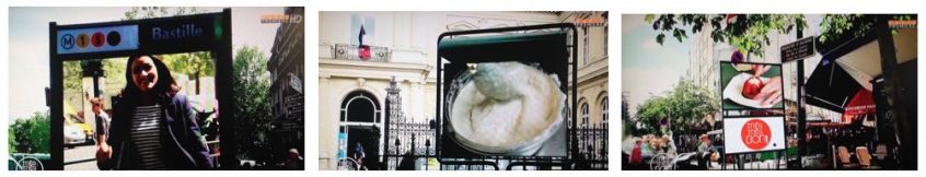 La volonté de mobiliser un imaginaire fort est évident : la ville est représentée en mouvements, les lieux symboliques se multiplient, en particulier lors de certaines séquences. La rubrique street-food est propice à ce genre d’inscription puisque Mina Soundiram s’applique à déguster son repas en situation, c’est-à-dire dehors, dans la ville. Le décor semble alors sélectionné en fonction de sa capacité à évoquer Paris : un quai de Seine, un square typique, …